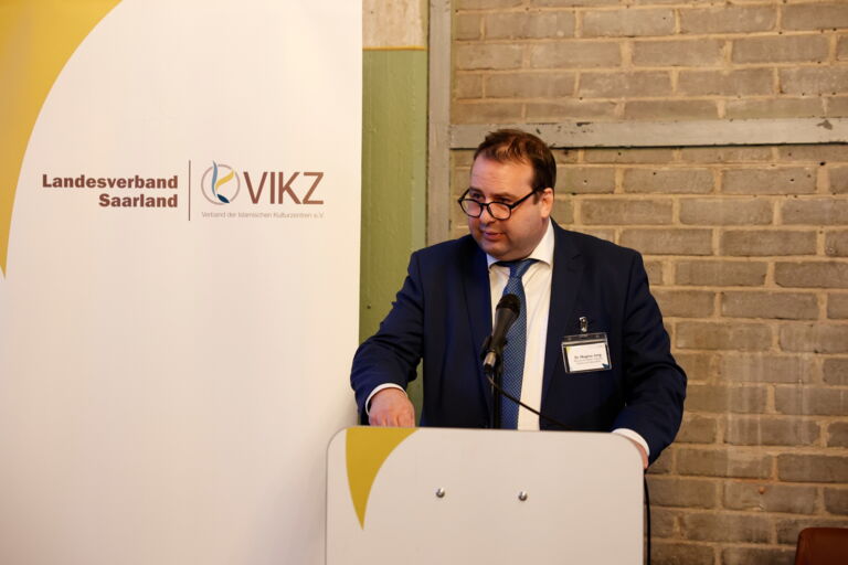 In seiner Ansprache stellte der Landesvorsitzende Halil Urhan die Arbeit des LVIKZ vor. Ein begleitender Video-Beitrag illustrierte die vielfältigen Bildungs- und Betreuungsangebote des Verbandes. Ein besonderes Augenmerk galt dabei der verbandseigenen Imamausbildung in Deutschland. Dieses Programm stelle sicher, dass die religiöse Betreuung durch Imame erfolge, die nicht nur fachlich ausgebildet, sondern hier sozialisiert und fest im hiesigen gesellschaftlichen Kontext verankert seien.