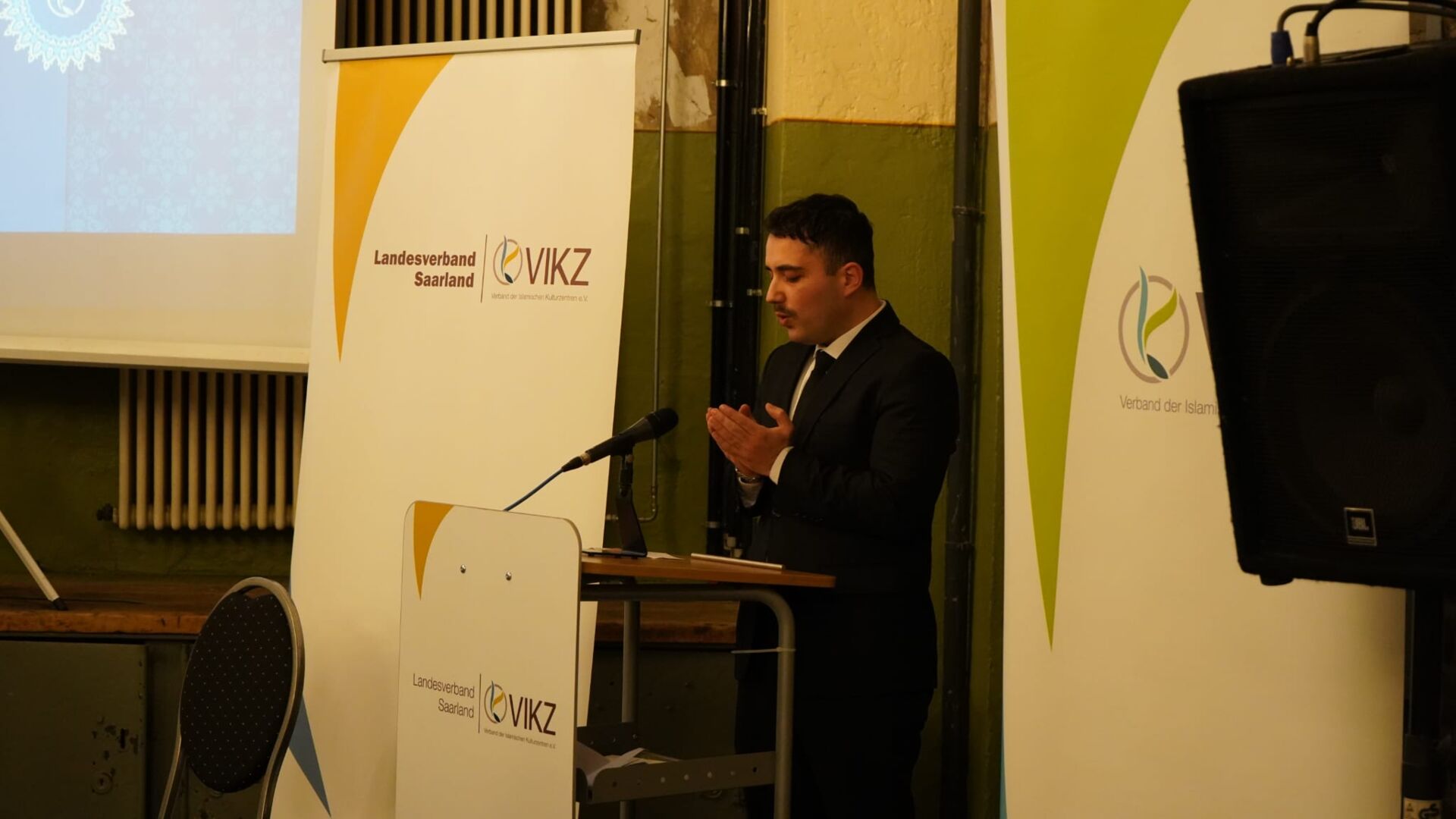 Halil Urhan, Vorsitzender des LVIKZ Saarland, hieß die Gäste herzlich willkommen und betonte in seiner Ansprache die Bedeutung des Fastenmonats Ramadan. Zudem stellte er die Arbeit des Verbandes vor und hob insbesondere die Nachwuchsförderung hervor. Er berichtete über die Erfolge der Studentenwohnheime und die langjährige Erfahrung des VIKZ in der Imam-Ausbildung. Zudem kündigte er an, dass das jährliche Treffen ab dem kommenden Jahr in Form eines Sommerfestes stattfinden soll.
